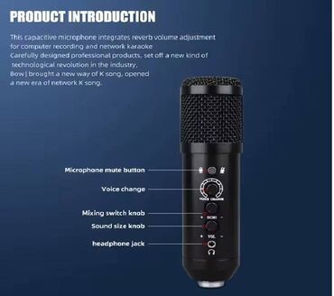 Mikrofon studiya . Ses yazmaq studiyas yuksek keyfiyyetli, ev ucun . Mikrofon usb(guclendirici usb den dir elave guclendiriciye ehtiyac yoxdur). Teze.