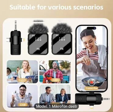- Şarj edilə bilən qurğu: USB-C girişli mikrofon modulu.