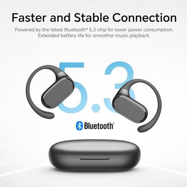 - Tam simsiz quruluş, qulaq üstü qarmaqla möhkəm oturuş – aktiv hərəkət və idman üçün rahat “sportiv format”.