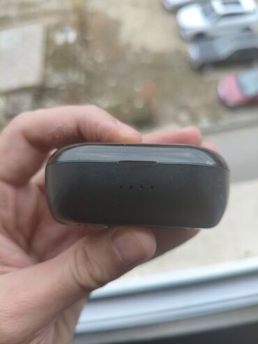 Portativ doldurma qutusu ilə kompakt simsiz qulaqlıqlar. Qulaqlıqların qara rəngli səthi parlaq görünüş verir. Qutunun ön tərəfində yaşıl işıq yayan indikator mövcuddur. Bu qulaqlıqlar musiqi dinlə...