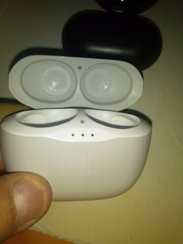 - JBL simsiz qulaqlıq qutusu: ağ rəng, üç göstərici dəliyi, iç hissədə qulaqlıq yuvaları.