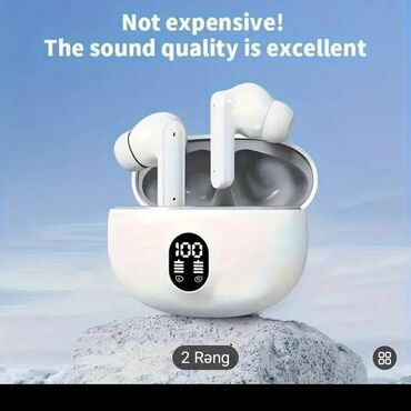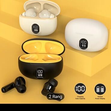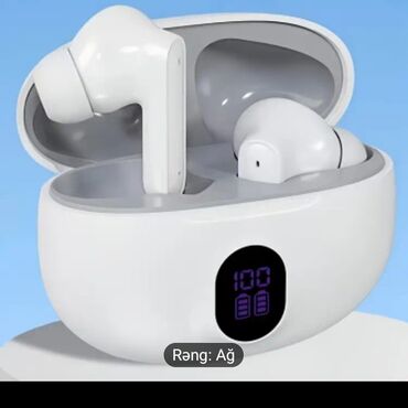 Simli qulaqlıq deyil, tam simsiz TWS qulaqlıqlar........... - Rəng: ağ - Şarj qabı LED displeyli: ümumi batareya faizi və hər bir qulaqlığın ayrıca göstəricisi ekranda görünür - Qulaqlıqlar qutuda ...