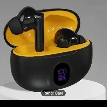 - Məhsul: Simsiz TWS qulaqlıq - Rəng: Qara qulaqlıqlar, qara-sarı şarj qutusu (sarı daxili panel) - Korpus: Maqnitli qapaqlı kompozit plastik qutu, ön tərəfdə dairəvi düymə/indikator sahəsi -...