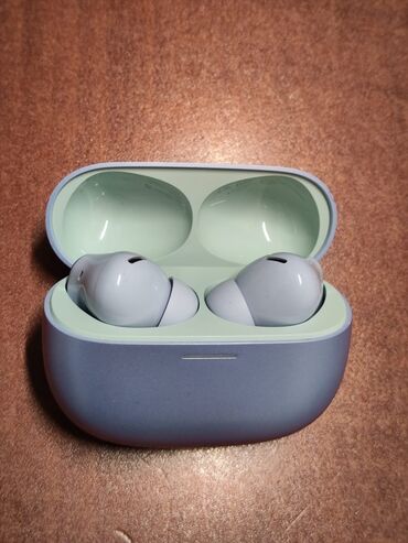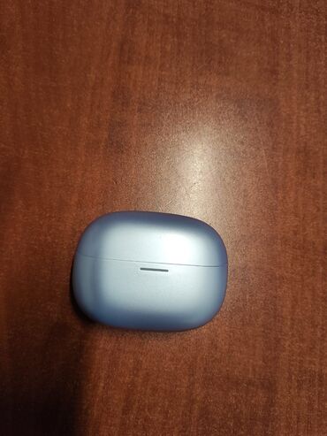 Dəst: 2 ədəd simsiz qulaqcıq + şarj qutusu. Rəng: mavi korpus, açıq yaşıl içlik, açıq boz qulaqcıqlar.