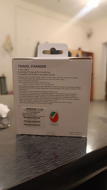Məhsul: Orijinal Samsung PD sürətli adapter + USB‑C to USB‑C kabel (3A)