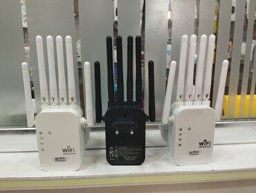Ağ rəngli, dörd xarici antenası olan bu WiFi təkrarlayıcı mövcud