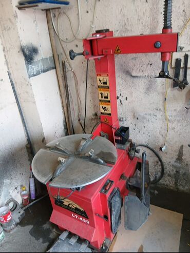 Avto təkər servisi üçün avadanlıq dəsti – Təkər söküb-taxma aparatı: Pneumatik, yan qol və mərkəzi sıxma çənləri ilə. Metal işçi stol, təkəri disqdən ayırmaq üçün ayaq pedallı mexanizm, manometrli...