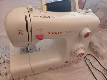 Ağ rəngdə, qırmızı və çəhrayı detalları olan, yığcam dizaynlı Singer Studio 15 tikiş maşını. Daşıma qolu sayəsində asanlıqla yerini dəyişmək mümkündür. Tikiş maşınının üzərində tikiş parametrlərini...