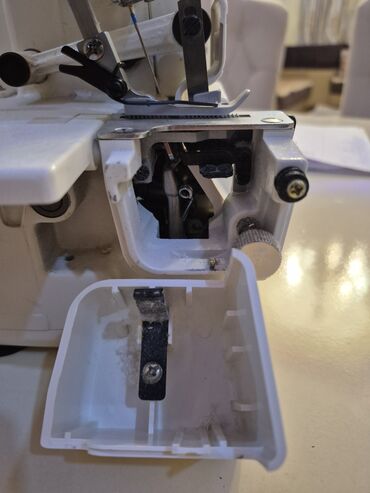 Sənaye overlok tikiş maşını – stol və pedal sistemi ilə komplekt. - 3–4 iplikli overlok başlığı, iplik üçün çoxlu dirəklər və ip gərginliyi tənzimləyiciləri. - Kəsim bıçağı ilə kənarları eyni anda...