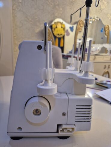 Overlok maşını Xüsusiyyətlər: - Overlok tip: 4 iplikli (tənzimlənən gərginlik düymələri ilə) - Sürətli sənaye elektromotor və iki pedal idarəsi (başlatma və bıçaq/qaldırma funksiyaları) - Kəsici b...