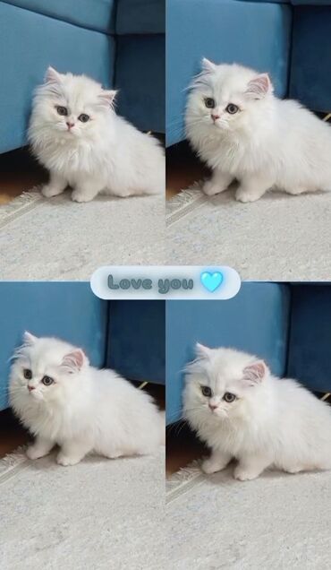 İtaliya tipli boz-gümüş rəng alt tonlu, uzun tüklü ağ balaca şincilla/pekin (pers) pişiyi.
