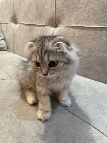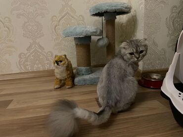 3 dənə erkey balalar idi. İkisi satıldı. Bir bu şirin qalıb. Rəngli gözdü. Öz pişiyimin balasıdır. 25 sentyabr doğulub. Tam sağlam oynayan pişikdir. Ata silver şınşıla ana skotiş foldur. Təmiz ci...