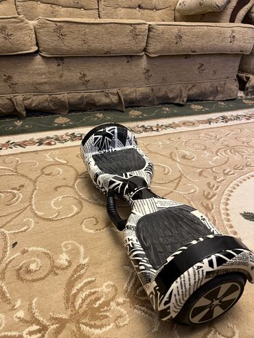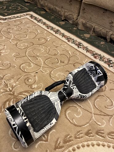 Deməy olar təzədi sürülmüş evdə qalıb Hoverboard/gyroskuter təkərlər, ikiqat platforma ilə. - Korpus: qara, rəngli naqışlı. - Sürüşməyə qarşı rezin ayaq platformaları. - LED işıqlar panel hissəsin...