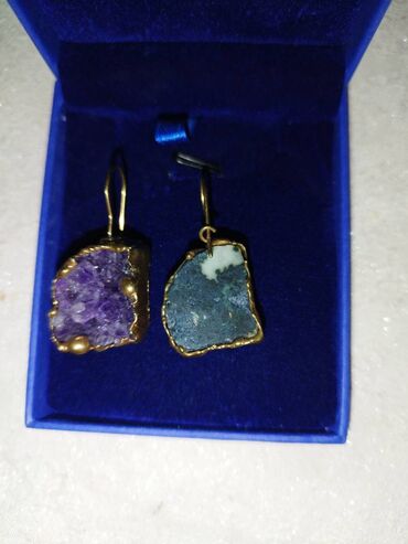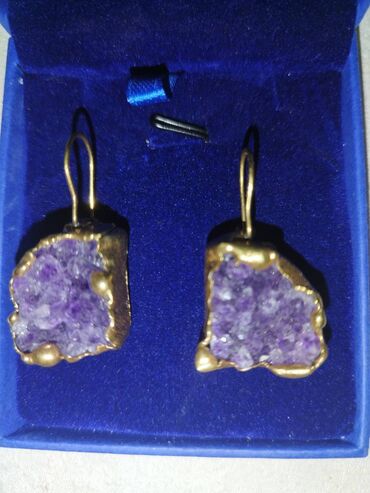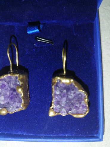 YeniСережки - Это серьги из аметистовой жеоды и азурит-малахитового камня с золотым покрытием, новый