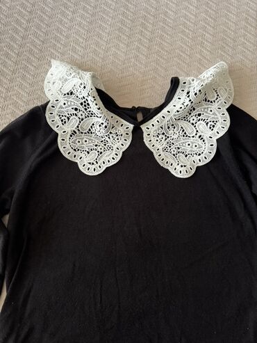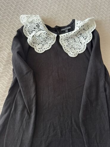 Qadın sviteri – Marions - Rəng: qara-ağ melanj gövdə, krem rəngli uzun qol ucları və alt büküm - Model: sərbəst kəsim, asimmetrik ətək xətti (ön qısa, arxa bir az uzun) - Yaxası: enli dairəvi, hör...