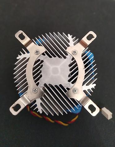 CPU soyuducu (fan + heatsink) - Tip: Prosessor üçün hava soyutma sistemi - Komplekt: Yuxarıdan fan, alüminium radiator (heatsink) və anakarta bərkidici plastik pərçimlər - Qoşulma: 3 pinli fan kon...