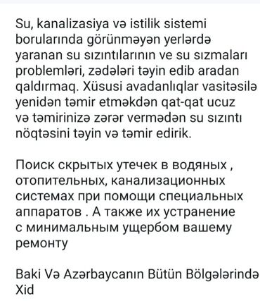 Su, kanalizasiya və istilik xətlərində gizli sızmaların tapılması və aradan qaldırılması xidməti
