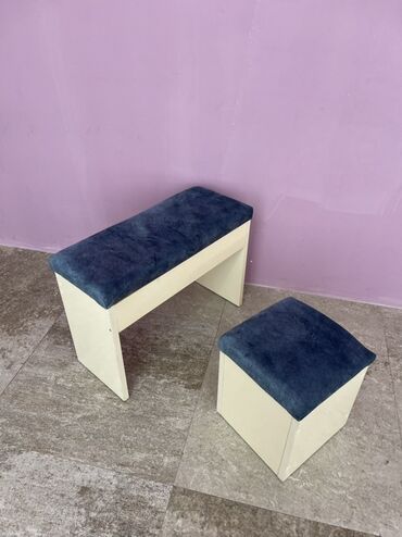 Məhsul: Divan və masa dəsti - Divan: mavi rəngli, bel hissəsi düyməli dizayn, ağ plastik ayaqlar; modul tipli 1 oturacaq. Qiymət: 1 divan 85₼ - Masa: ağ rəngdə, düzbucaqlı üstlük, dörd dayaqlı sta...