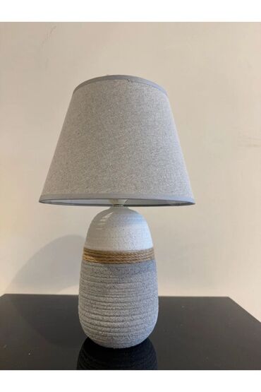 - Dizayn: Skandinaviya üslubunda, parça abajur və teksturalı keramika gövdə. Gövdənin orta hissəsində təbii kəndir detallı dekor xətti.