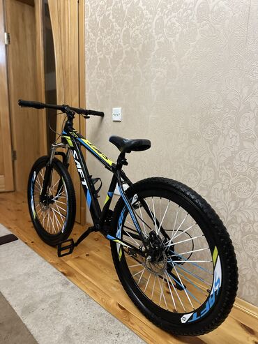 Sarfet brendli dağ velosipedi - Korpus: yüngül və möhkəm alüminium tipli çərçivə, idman yönümlü geometriya - Təkərlər: 26" clincher tipli, qalın protektorlu şinlər; rəngli jant yapışqanları - Asqı...