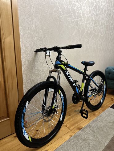 Velosiped "SAFT" firması. Çox az işlənib, ideal vəziyyətdədir. Heç bir problemi yoxdur. Əlavə olaraq işıq, siqnal və su qabı quraşdırılıb.