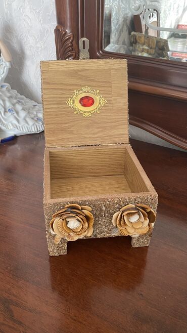 Bu, taxtadan hazırlanmış, oyma bəzəkli zərgərlik qutusudur. Əl işi ile hazirlanib real alicilara endirim var