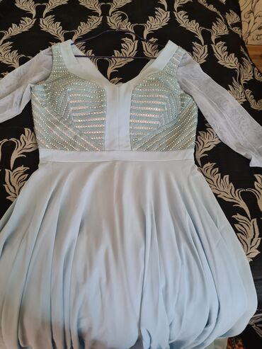 Shifon materialda mavi don, MERBI magazasindan alinib, 2 defe geyinilib. Uzunlugu hundur boy xanimlara uygundur. Olcu 40-42. Endirim mumkundur!!