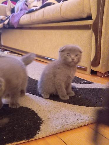 Britaniya qıvrımqulağı (Scottish Fold) balaları - Rəng: təkrəng boz (blue) - Qulaqlar: qıvrım - Gözlər: iri, açıq rəngli - Xəz: sıx və yumşaq, plyuş kimi - Xarakter: mehriban, sakit, oyunsevər; ev...