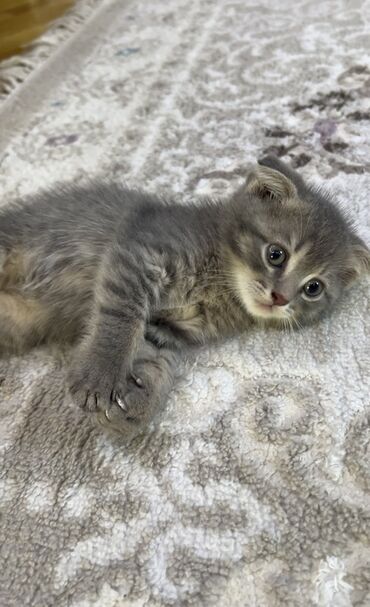 Scottish fold miks Xüsusiyyətlər: - Yaş: baladır (yeni doğulmuşdan bir qədər böyük) - Rəng: ağ-boz-qara qarışıq, pəncələri və sinəsi ağ - Qulaqlar yumuşaq aşağı əyimli, gözləri iri və mavi-boz t...