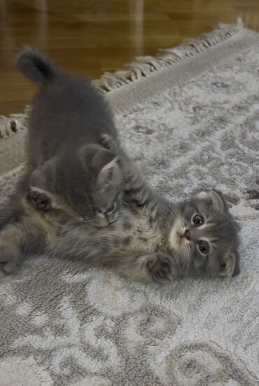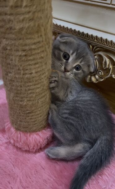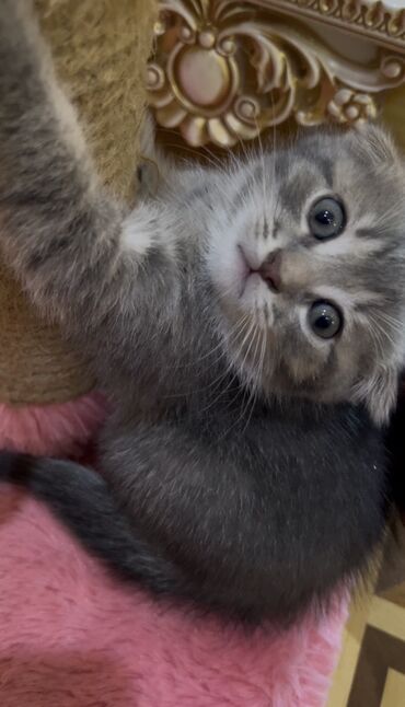 Skottiş Fold pişiyinin balası satilir - Cins: Scottish Fold (qatlanmış qulaqlı) - Rəng: klassik tünd-boz “tabby” (zolaqlı) naxış - Xüsusiyyətlər: iri, ifadəli gözlər; yumşaq, sıx yun; yığcam bədə...