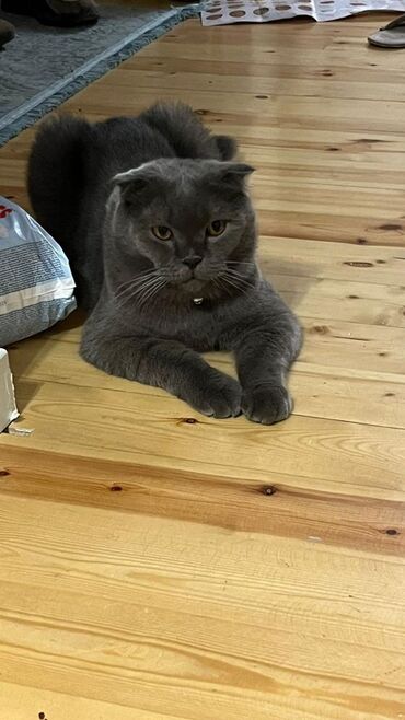 Şotland Fold pişiyi - Cins: Şotland yastı qulaq (Şotland Fold) - Rəng: tünd boz, tük örtüyü qalın və yumşaq - Gözlər: narıncı tonlarda - Qulaqlar: irəli əyilmiş, cinsə məxsus xarakterik forma - Bo...199 AZN