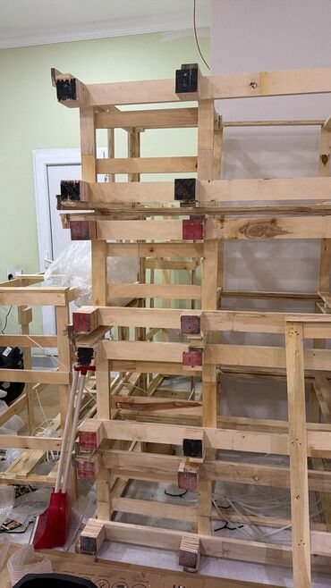 - Ağac materialından yığılmış möhkəm karkaslar