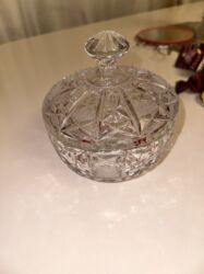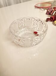 əl işi yuqoslav kristal . hər tərəfi xirda əl işi ilə işlənmiş,45 yaşi var.,antikvar. Satişda olmamiş. Ölkəmizə 3 dənə qəririlmişdir 5 bucaq.böyük, ağir meyvə qabiağ rənqdə