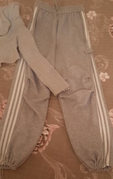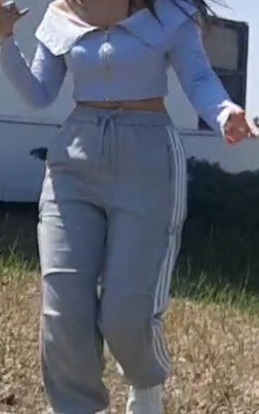 Boz rəngli iki hissəli spor dəst 60 man alinib 20 man satilir 1 defe geynilib 38-40 olcuye gedir - Üst: fermuarlı, klassik yaxalı, qısa kəsim. Sinə hissəsində iki ədəd fermuarlı cib var. Qollar rez...