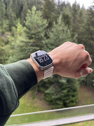 Apple watch ultra Saat ideal vəziyyətdədir, cızıq və problem YOXDUR. Pil vəziyyəti yüksəkdir (90%+), rahat uzun müddət istifadə edə bilərsən. Komplekt FULL: ✔️ Orijinal kəmər ✔️ Əlavə A-class kə...
