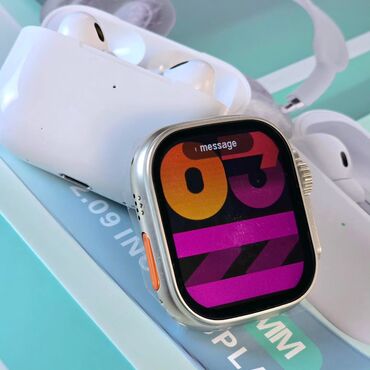 - Smart saat (49 mm, AMOLED ekran). Ekranda zəng, bildiriş, idman rejimləri və sağlamlıq göstəriciləri üçün ikonalar mövcuddur. Yan siferblat düyməsi və funksional tac. Dəstdə maqnit yükləyici kabel və iki əlavə kəmər (silikon və toxunma) verilir.