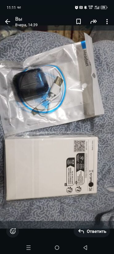 - Ayrı paketdə TWS tipli simsiz qulaqlıq (şarj qutusu ilə), USB şarj kabeli (USB–microUSB).