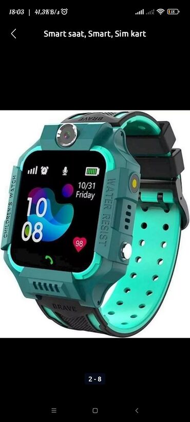 Smart Saat.⌚ 🕹️ Gps. 🔦 Fanar. 📞 Usaga zəng edirsiz. 📞 Usaq size zeng edir. 🔊 Ses atmaq olur. 💌 Mesaj yazmaq olur. 📸 Gizli seklin cekirsiz usagin. 📢 Gizli sesine qulaq asirsiz. 📲 Azercell,Bakcell,Na...
