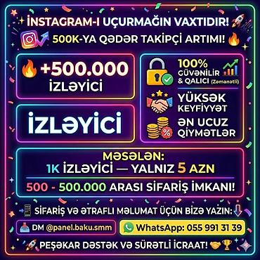- Instagram izləyici artımı: 1K izləyici — 5 AZN