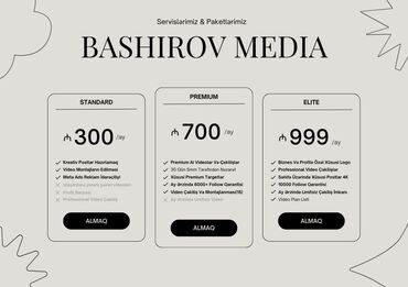 Bashirov Media komandası olaraq 5 ildən çox təcrübəyə malik mütəxəssislərlə SMM idarəçiliyi və Reels (qısa video) istehsalı sahəsində fəaliyyət göstəririk. Əməkdaşlıq etdiyimiz şirkətlər üçün brend tanınırlığını artıran, izləyici cəlb edən və satışa yönəlmiş nəticələr təqdim edirik. Çəkilişlər tam bizim avadanlıqlarımızla – stabilizator, mikrofon, professional kamera və işıq sistemləri vasitəsilə həyata keçirilir. Montaj prosesi Adobe Premiere Pro və CapCut Pro proqramları ilə yüksək keyfiyyətdə icra olunur. Bütün ssenari və ideya hazırlığı Bashirov Media komandası tərəfindən təmin edilir. Bizim məqsədimiz – şirkətinizin sosial mediada fərqlənməsi və real nəticələr əldə etməsidir. Əmin olun ki, bizlə əməkdaşlıq etdikdə brendiniz üçün gözə çarpan uğurlar əldə edəcəksiniz. 📞 Əlaqə: [ Qeyd Olunub ] 📱 Instagram: [@bashirov_media]