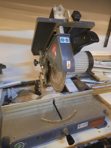 PVC/alüminium qapı-pəncərə istehsalı üçün avadanlıq dəsti - Gönye kəsim mişarı: 255 mm disk ölçülü, qoruyucu örtüklü, bucaq göstəriciləri və dayaq hökmləri ilə dəqiq 0–45° kəsimlər üçün. İş parças...