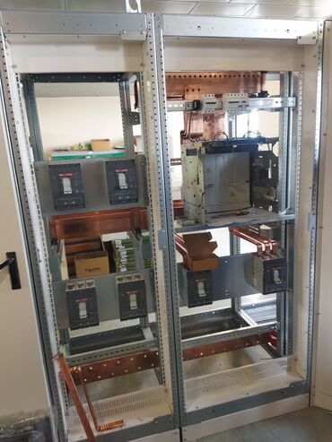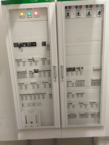 Avtomatik elektrik paylayıcı/idarəetmə şkafı - Plastik korpuslu, divara quraşdırılan elektrik şkafı - Ön paneldə rəqəmsal voltmetr göstəricisi (V) və iki ədəd yaşıl idarəetmə düyməsi - İçəridə DIN...