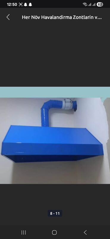 Sənaye mətbəxləri və ya kommersiya obyektləri üçün nəzərdə tutulmuş metal havalandırma zontu. Paslanmayan poladdan hazırlanmış bu zont divara quraşdırılır və yemək bişirərkən yaranan tüstü və qoxuları effektiv şəkildə kənarlaşdırmaq üçün istifadə olunur. Onun hamar səthi asan təmizlənməyə imkan verir və uzunmüddətli istifadə üçün davamlı quruluşa malikdir. Müxtəlif sənaye şəraitlərinə uyğun gələn etibarlı havalandırma həllidir.