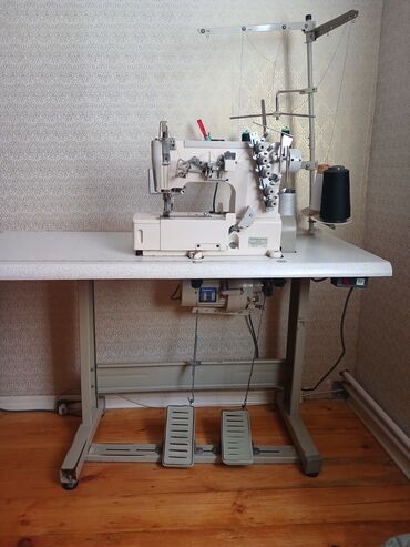 Sənaye tikiş maşını – resme/coverstitch tipli peşəkar avadanlıq. Xüsusiyyətlər: - Masa üstü komplekt: möhkəm metal ayaqlıq, pedallar və geniş iş səthi - Güclü elektrik mühərriki (səsboğucu korpusd...