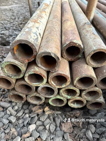 Metaldan borular – müxtəlif ölçülü, dairəvi kəsikli Təsvir: - Material: karbon poladı - Tip: boşluqlu (dairəvi) borular - Xarici səth: zavod istehsalı, qalın divarlı; səthdə təbii rəng dəyişməsi v...