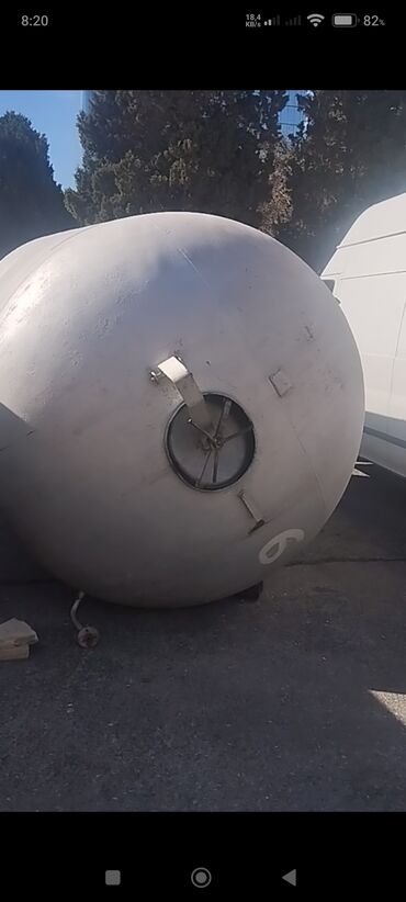 Sənaye tipli böyük həcmli metal çənlər - Material: qalın divarlı polad - Quruluş: silindrik gövdə, kürəvi başlıqlar - Üst və yan hissələrdə bir neçə flanşlı giriş-çıxış portu - Texniki baxış üçün ...
