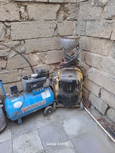 - Forsage hava kompressoru: 2.5 HP gücündə, mavi rəngli resevuar, təzyiq göstəriciləri və çıxış klapanları ilə. Hava ilə işləyən alətlər, şlanqla üfürmə/qurutma işləri üçün əlverişlidir.
