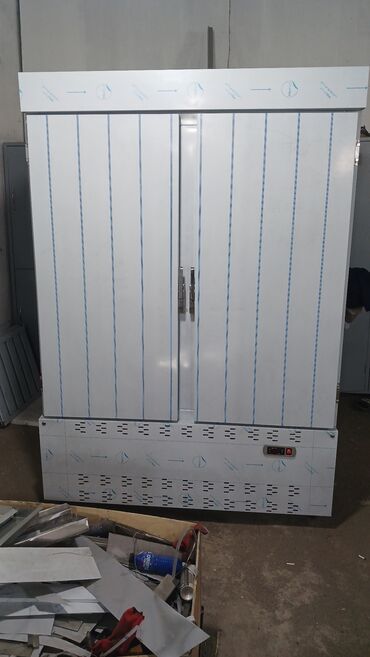 - İkiqat qapılı böyük şkaf tipli soyuducu; alt hissədə havalandırma ızgaraları və elektron idarəetmə paneli/göstərici (ON/OFF düyməsi ilə).