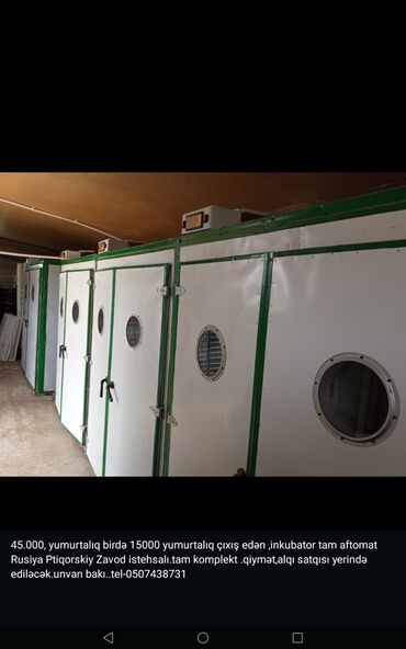 Quşçuluq təsərrüfatları üçün yüksək tutumlu, avtomatlaşdırılmış inkubasiya və çıxdıxana prosesi təşkil etməyə imkan verir. Məkan: Bakı (mətn üzrə).