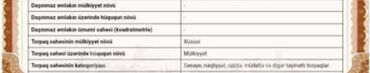 - Mülkiyyət növü: xüsusi mülkiyyət, hüquq növü – mülkiyyət (çıxarışda qeyd).